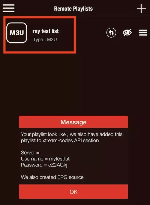 6-Save the settings and start watching List is added successfully. The application is also saying that it has added the same list to the Xtream Codes section. Click OK and choose the playlist.