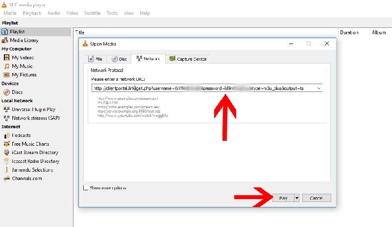 2.Open VLC, go to Media → Open Network Stream.