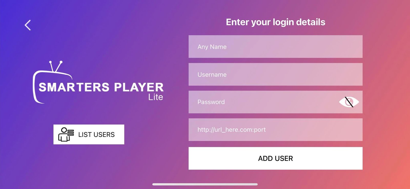 3.Open the app and enter your IPTV details (M3U playlist or Xtream Codes)
